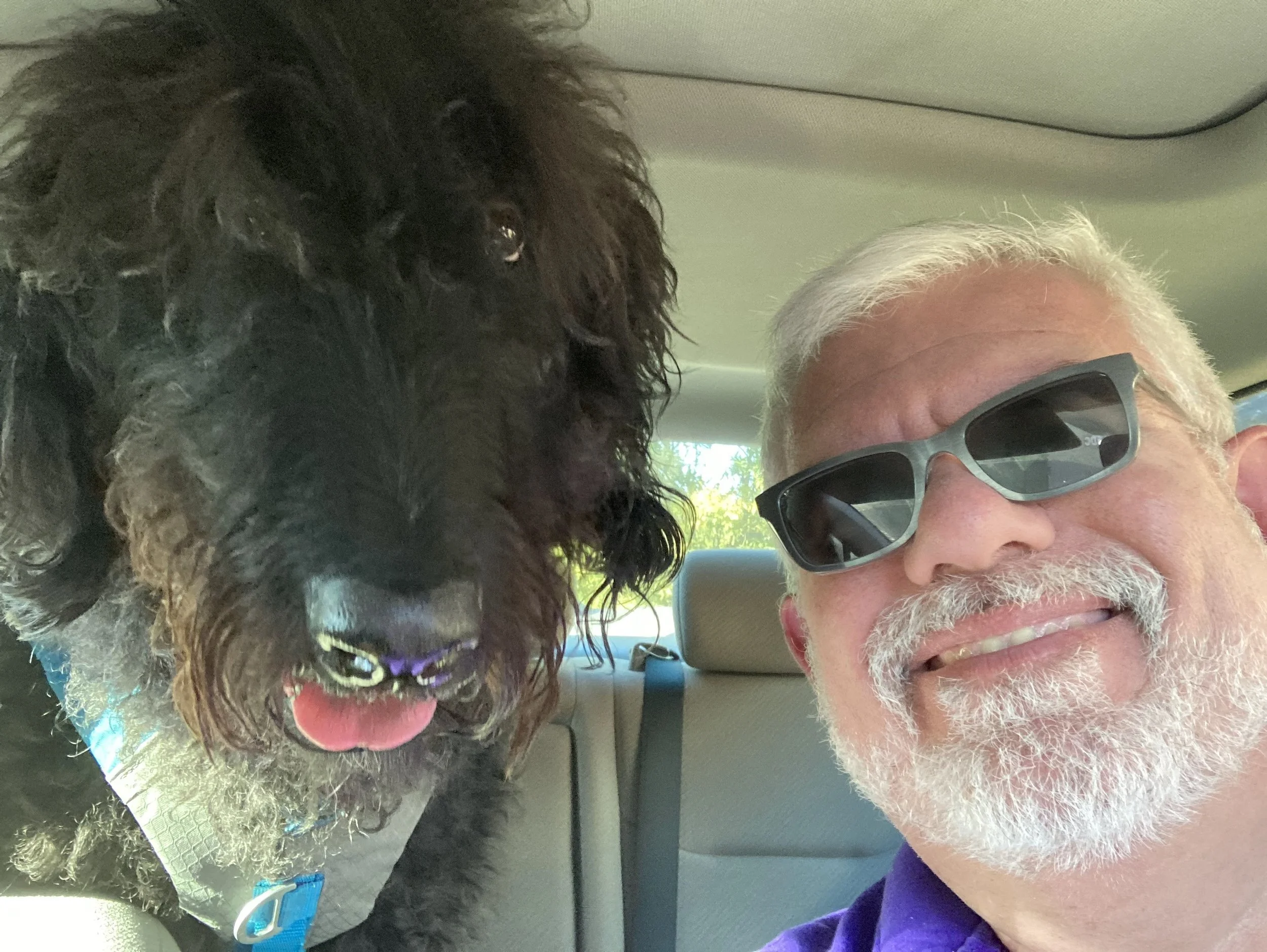 Mark and Andrea are kept on their toes by the ever-affectionate and mischievous four-year-old Airedoodle, Cokie. (Named after the late Cokie Roberts, Journalist and Political Commentator).